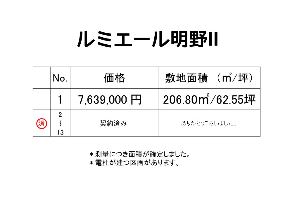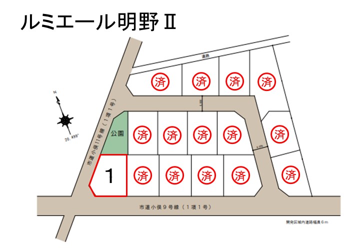 - 197.18m²(59.64坪)から297.23m²(89.91坪) 最多区画面積帯:60坪前後